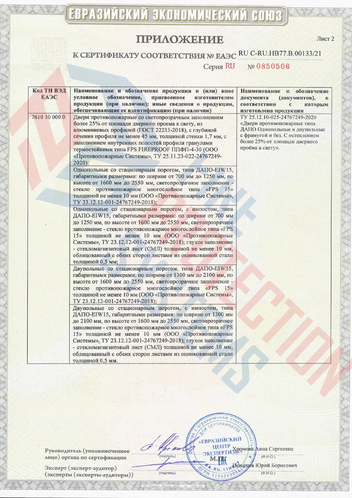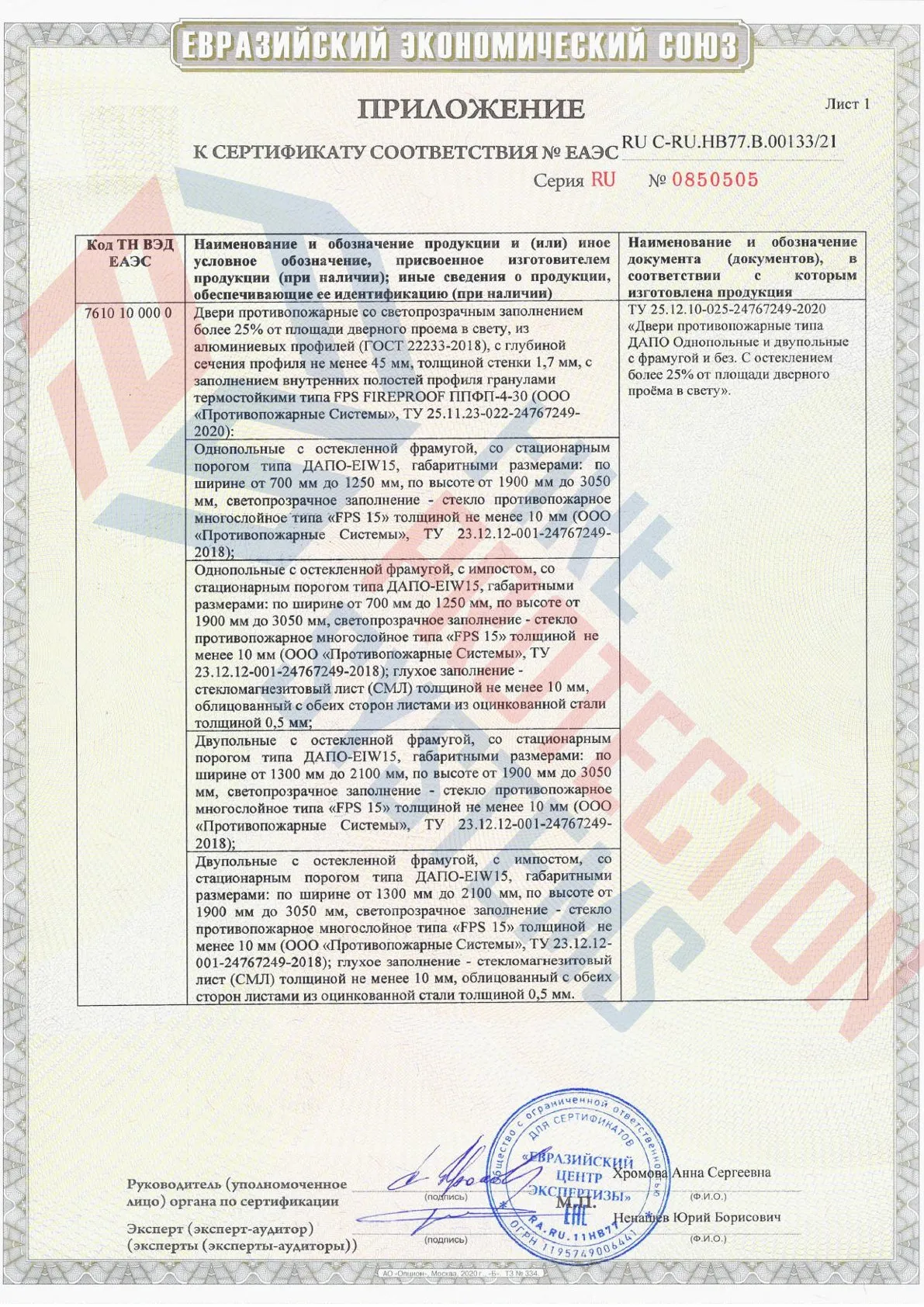 Помимо производства противопожарных алюминиевых дверей наш завод осуществляет изготовление конструкций следующего типа: